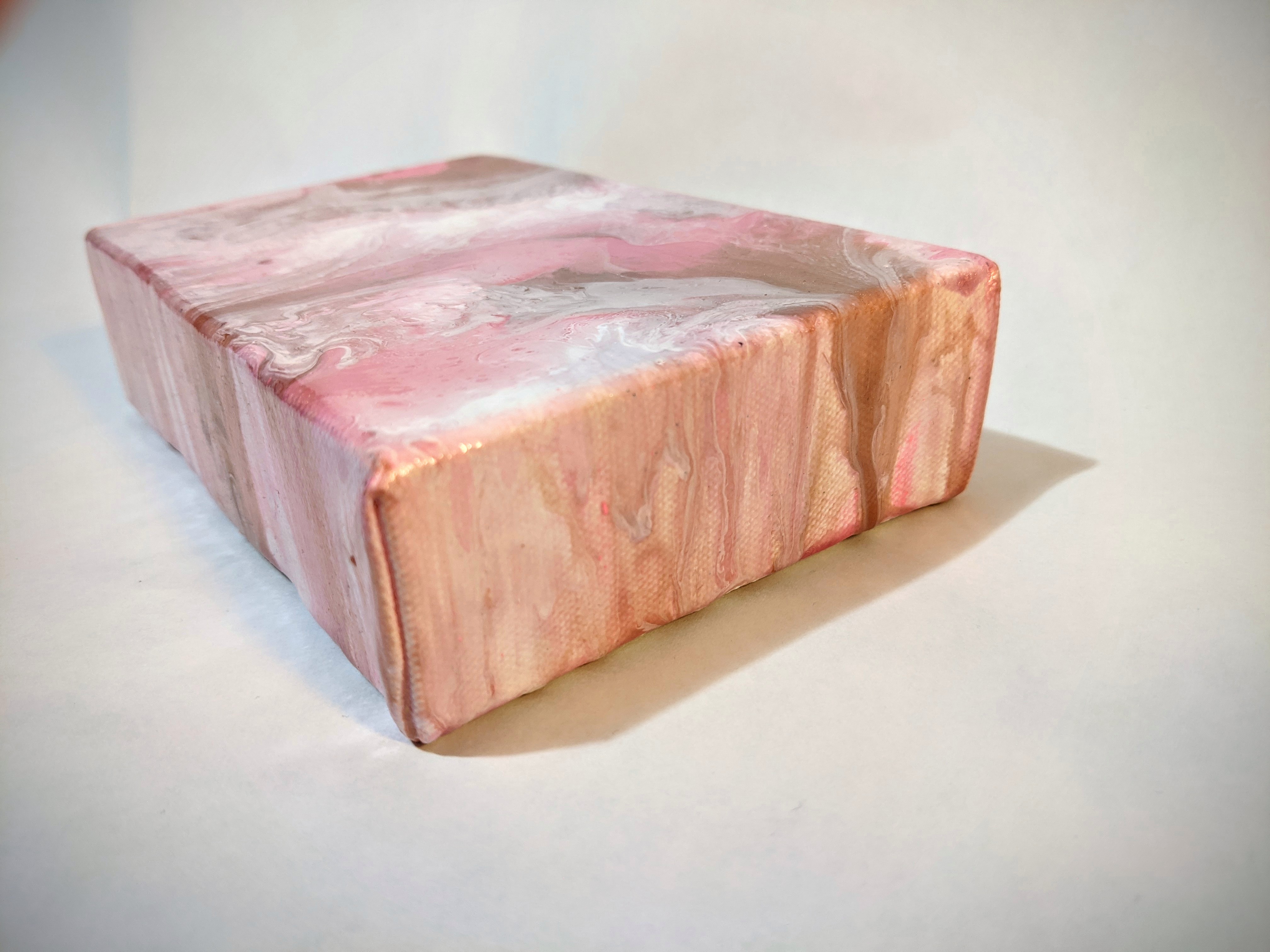 Unique and one of a kind acrylic paint and ink with a subtle gold shimmer on deep edge canvas.