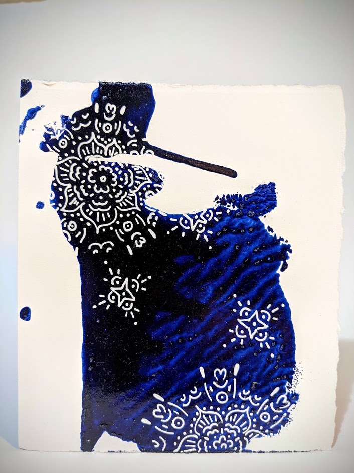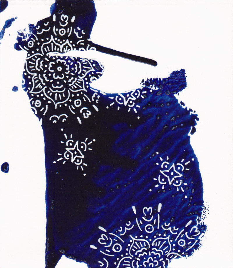 Original acrylic and gel pen art on paper. Measures approximately 5 3/4x6 1/2 inches.