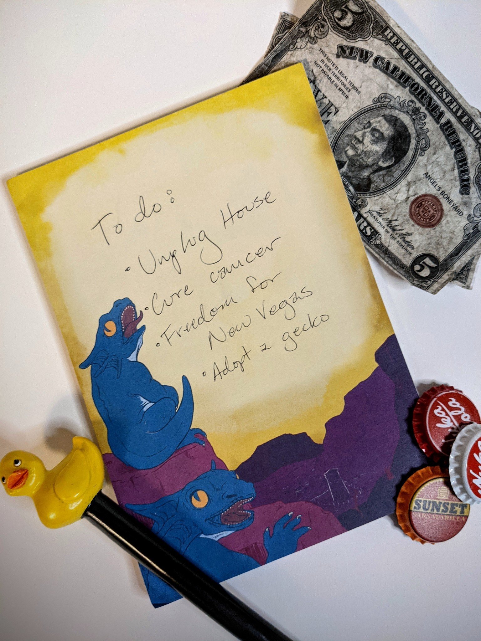 A pair of semi-vacant reptiles to watch over your notes and the town of Goodsprings. Perfect for to-do lists!
