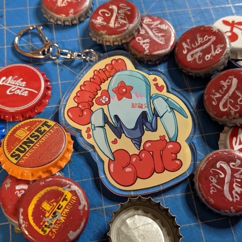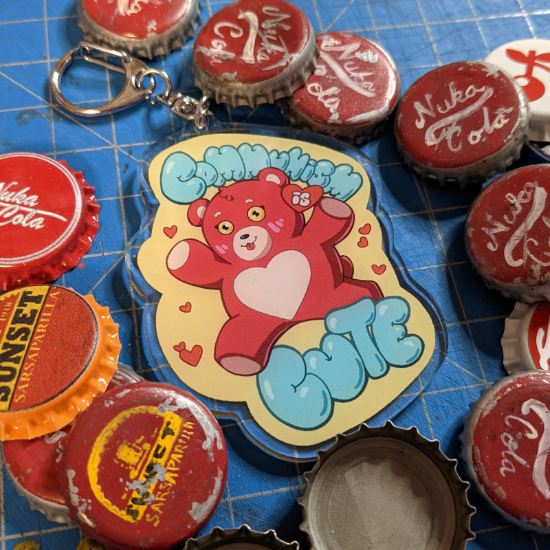 This clear acrylic charm features a Liberator robot on one side and a cutesy Comrade Chubs teddy on the other side. It measures approximately 3 inches tall.