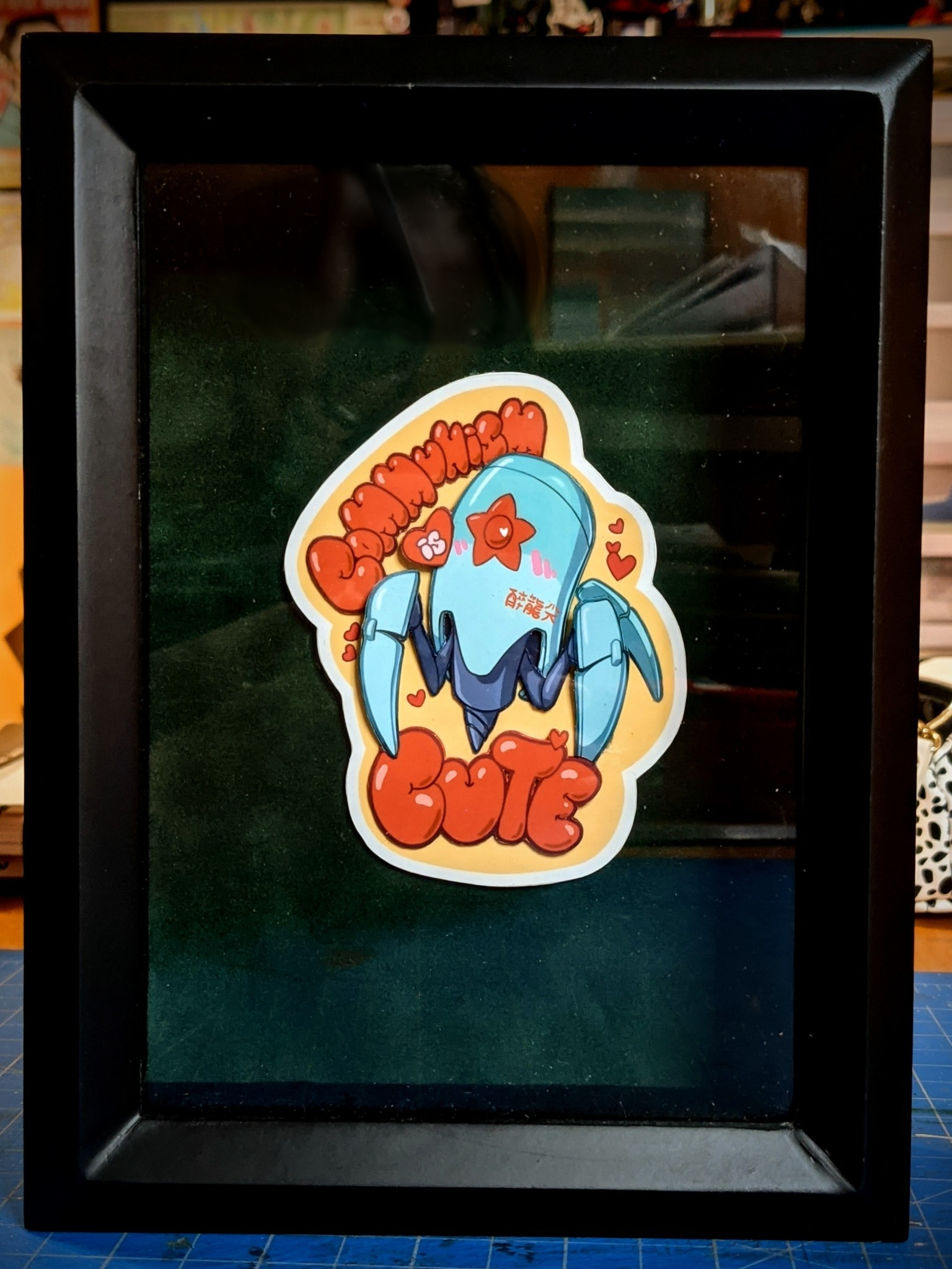 A one of a kind hand-cut and layer version of my Communism is Cute sticker mounted in a shadow box. This little fella is coming right at ya!