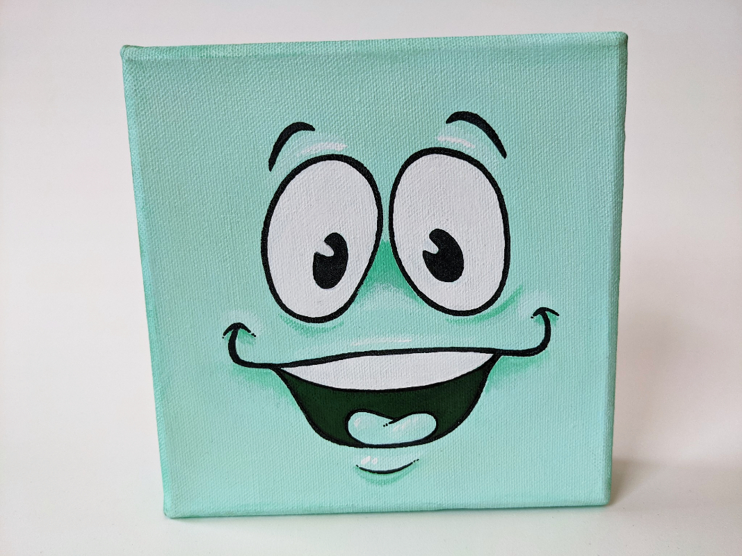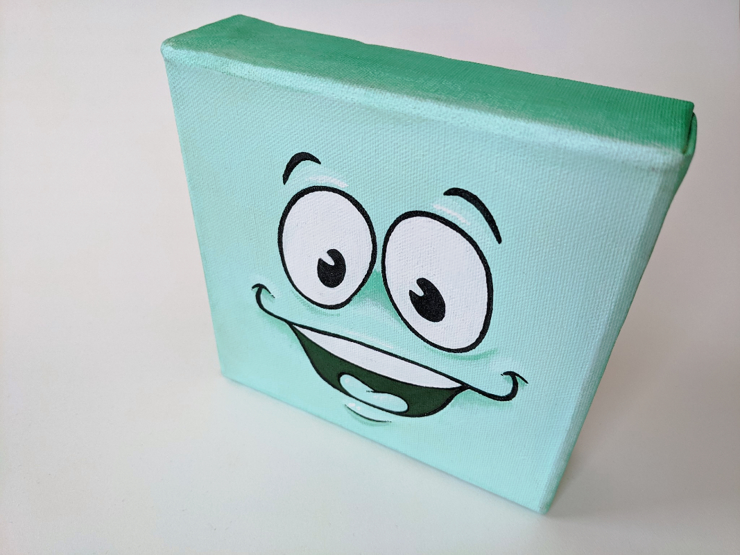 A happy and cheerful hand painted acrylic portrait of Yes Man to keep you company as you make all your toughest decisions.