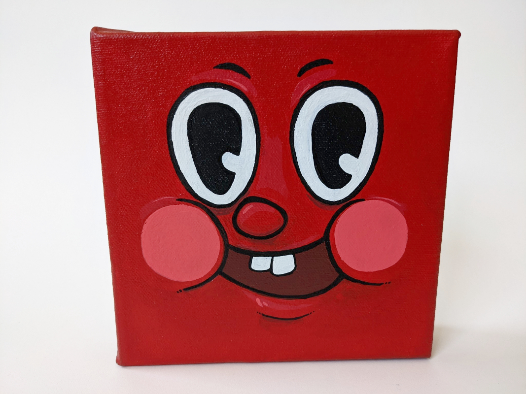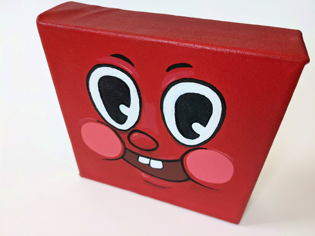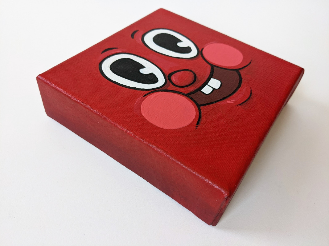 A fun and cheerful mascot friend hand painted with acrylics to watch over you. Always watching.