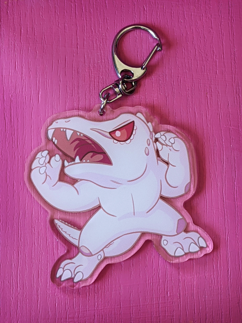 Double sided clear acrylic charm with standard clasp. Measures approximately 2x2 inches.