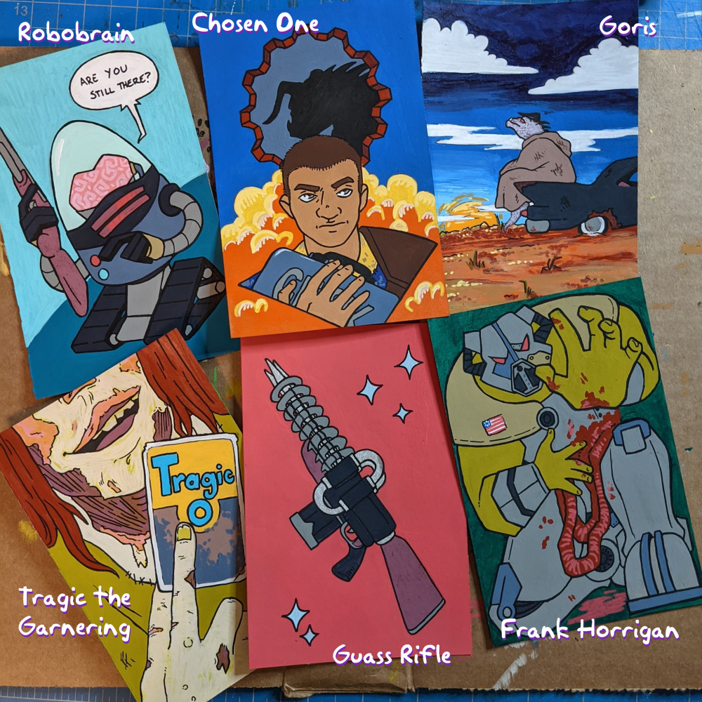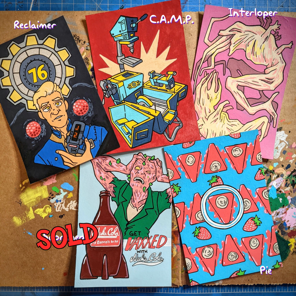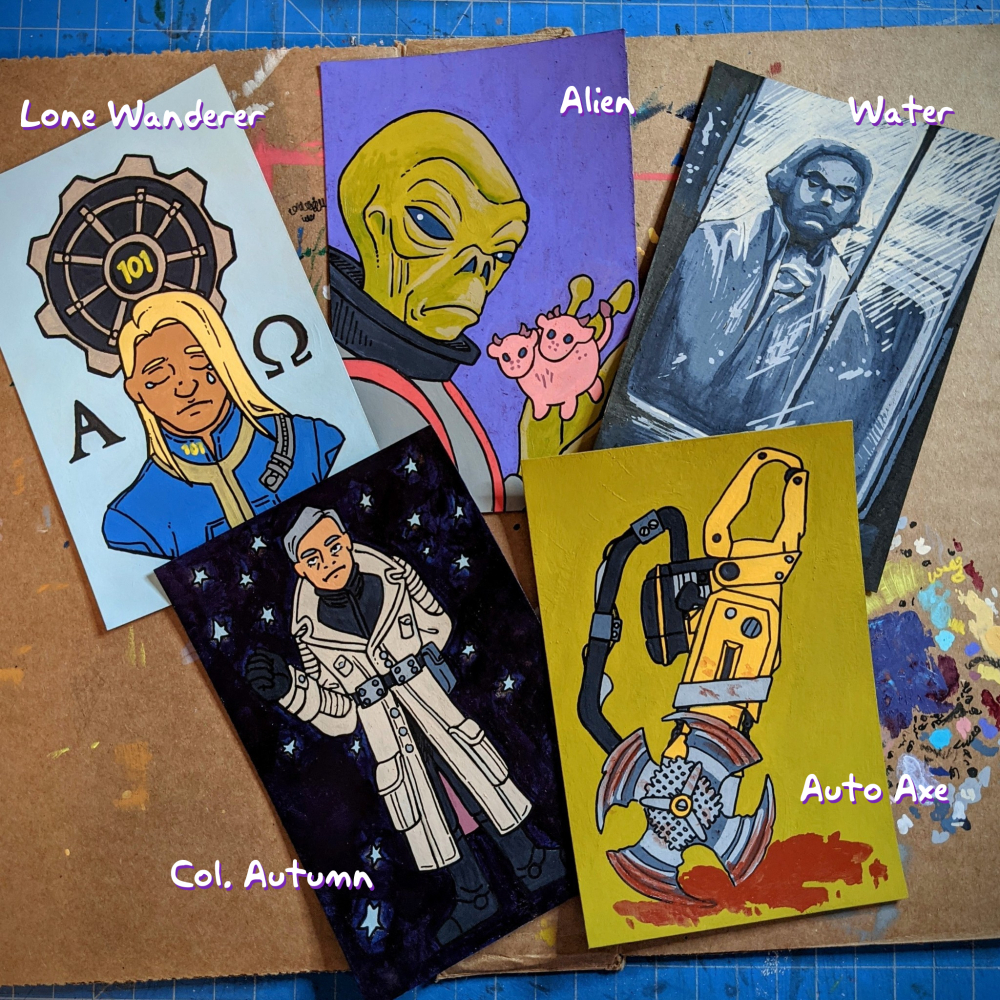 To celebrate 25 years of the Fallout franchise, I made a new painting every day for the entire month of October. Now they can be yours! The six major games are represented with five pieces each featuring characters, locations, items, or themes that made an impression on me while playing the games.