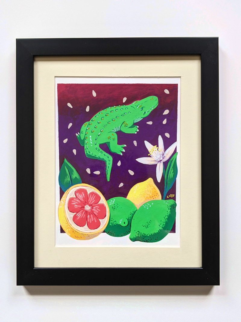 Original pieces hand painted with acrylics featuring cute animals and colorful fruits. Perfect for children's and family friendly spaces to add color to a space.