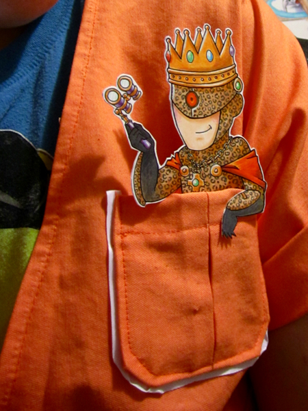This Animal King turret android paper child was hand drawn, inked, and colored with Copic markers before being mounted on bristol board and carefully hand cut.